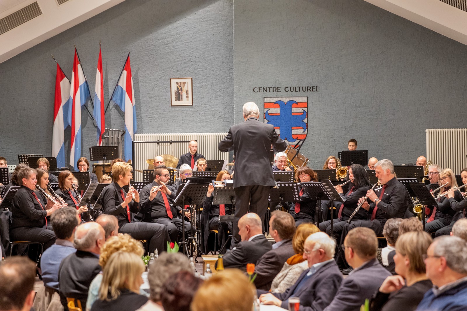 Den Optakt vun de Feierlechkeete fir den 125. Gebuertsdag vun eiser Musik war de 7. Mäerz mat engem flotte Concert gespillt vun der Ëlwënter Musik. Déi 70 Musikantinnen a Musikanten, ënnert der Leedung vum Dirigent Werner Eckes, woussten d’Nolauschterer mat hirem usprochsvolle Programm „HUT goes Movies“ ze begeeschteren. Dëse Concert stung ënnert dem Patronage vun der UGDA, vertrueden duerch den Här Robert Mamer. Och wann de Centre Culturel deen Owend net bis op déi läscht Platz besat war, sécherlich bedéngt duerch déi éischt Auswierkunge vum Coronavirus, sou konnt de President vum Organisatiounscomité dach en etlech Eieregäscht begréissen, nieft de Gemengevertrieder aus eiser Gemeng an de Nopeschgemengen, Vertrieder vun anere Veräiner a Musiken, Sponsoren an Eieremembere vun eiser Musiksgesellschaft, ënner anerem och den Deputéierten André Bauler.
